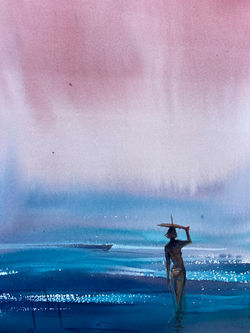 Surfing also became a bridge for the world of creating. Nowadays I´m dedicated to painting with watercolor. I like to transfer the essence of surfing, traveling, and exploration of empty lineups into a painting. Basically, this is it.
